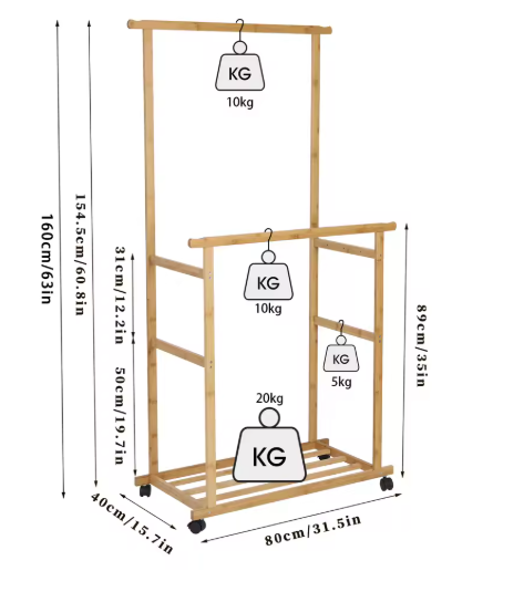 Bamboo Clothes Rack Portable Extra Large Garment Rack Storage Box Shelves For Entryway and Bed Room