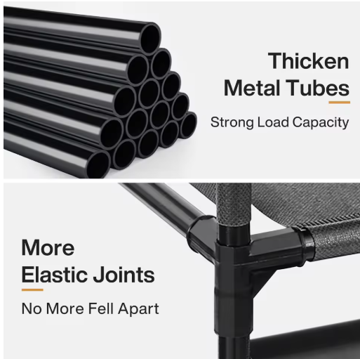 Not only does it provide a home for your favorite footwear, but this elegant shoe rack also includes 4 large bins drawers. These offer extra storage for smaller items, shoe maintenance accessories, or other essentials, enhancing the functionality of this robust shoe rack and ensuring that everything you need is just an arm's length away.