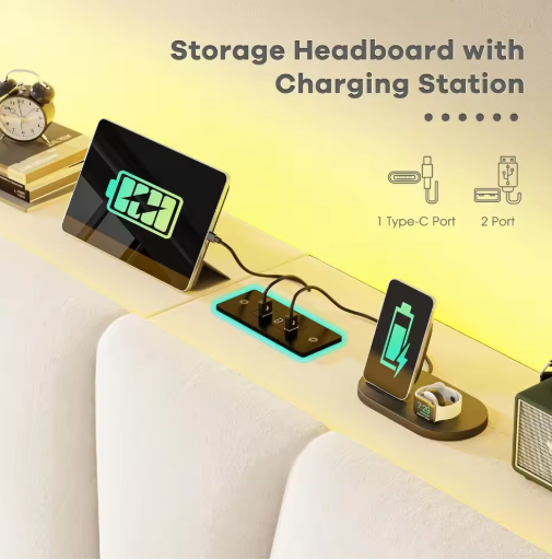 - Storage Headboard with Charging Station: No worry about the low battery. This bed headboard has a built -in charging station, which can totally charge your electronic devices at the same time. Besides, the top of the headboard leaves 4.7" storage space, making it convenient for you to place commonly used items, such as books, phones, cameras, etc.